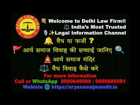 Delhi Law Firm® आपके लिए लेकर आया है एक महत्वपूर्ण कानूनी जानकारी – आर्य समाज विवाह की वैधता और उससे जुड़ी सावधानियाँ। शादी करने से पहले यह जानना बहुत आवश्यक है कि आपका विवाह कानूनी रूप से वैध है या नहीं, और क्या जिस आर्य समाज मंदिर में आप विवाह कर रहे हैं, वह पंजीकृत और असली मंदिर है या नहीं।